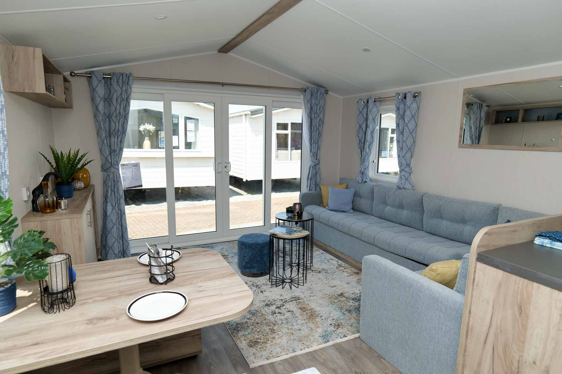 20250102 is a year-round mobile home with central heating and excellent insulation, offering a spacious living room with large windows, a luxurious U-shaped kitchen and two comfortable bedrooms - ideal for relaxation and permanent residence.