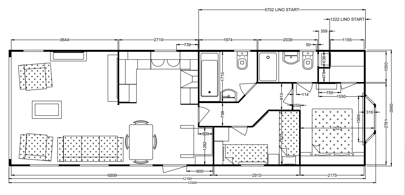 - 12.19 m long x 3.96 m wide - Mobile log cabin