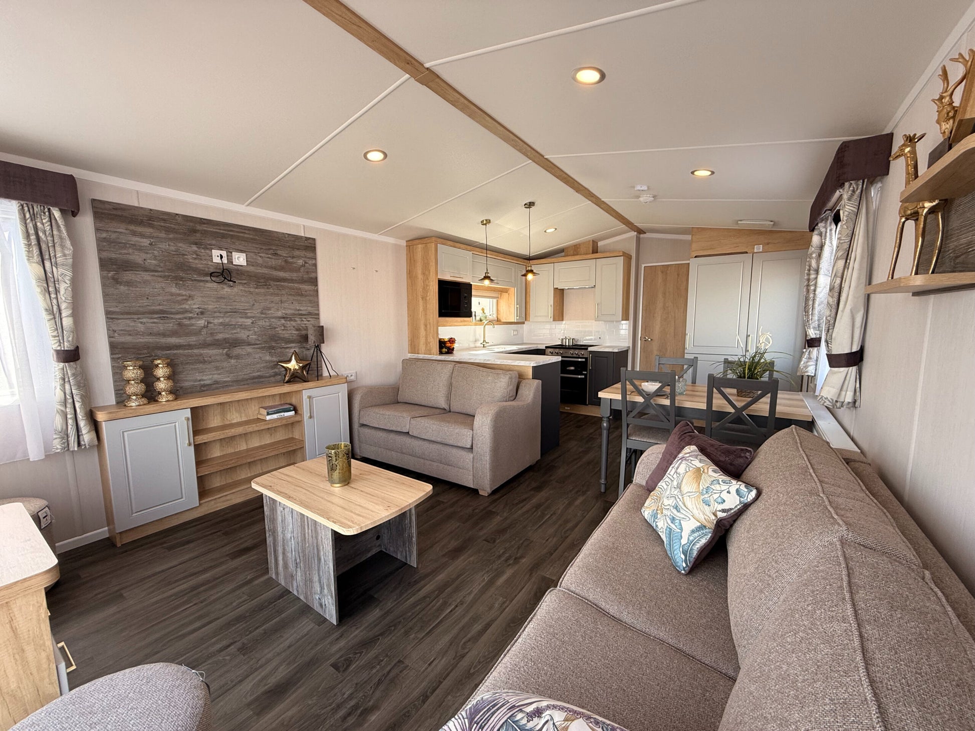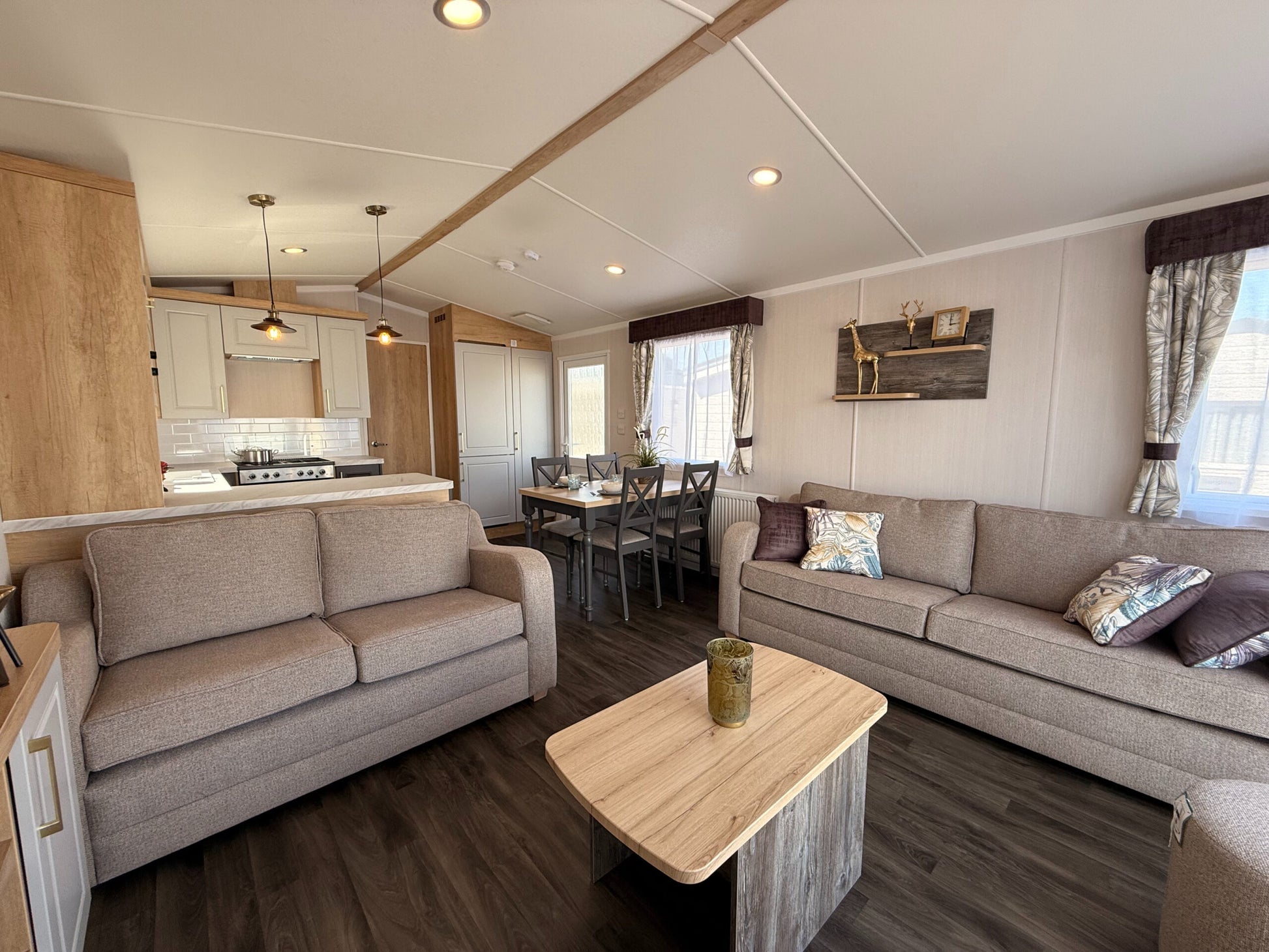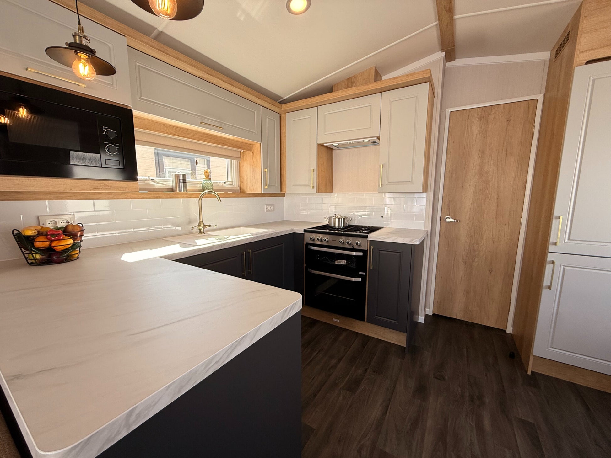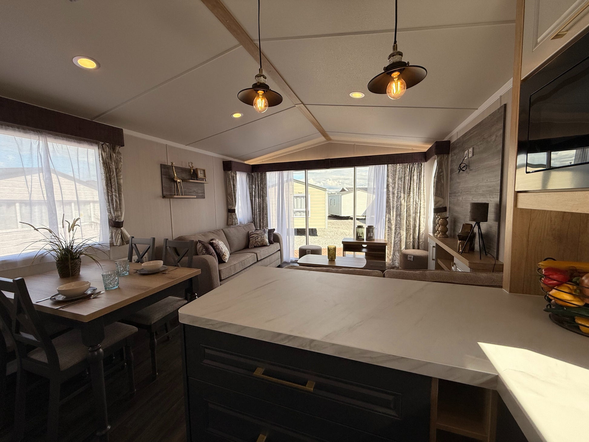 20250103 to domek mobilny klasy premium – elegancki, nowoczesny i w pełni wyposażony. Dzięki przestronnemu salonowi, luksusowej kuchni i dwóm komfortowym sypialniom stanowi idealną przestrzeń do tworzenia pięknych wspomnień z najbliższymi.