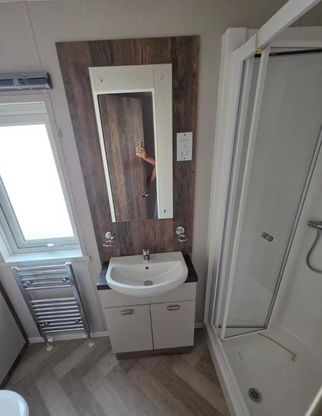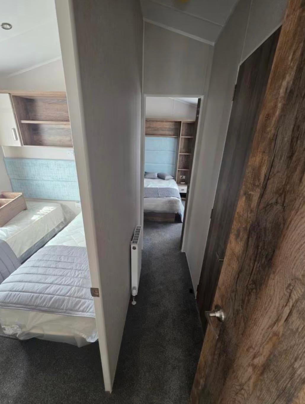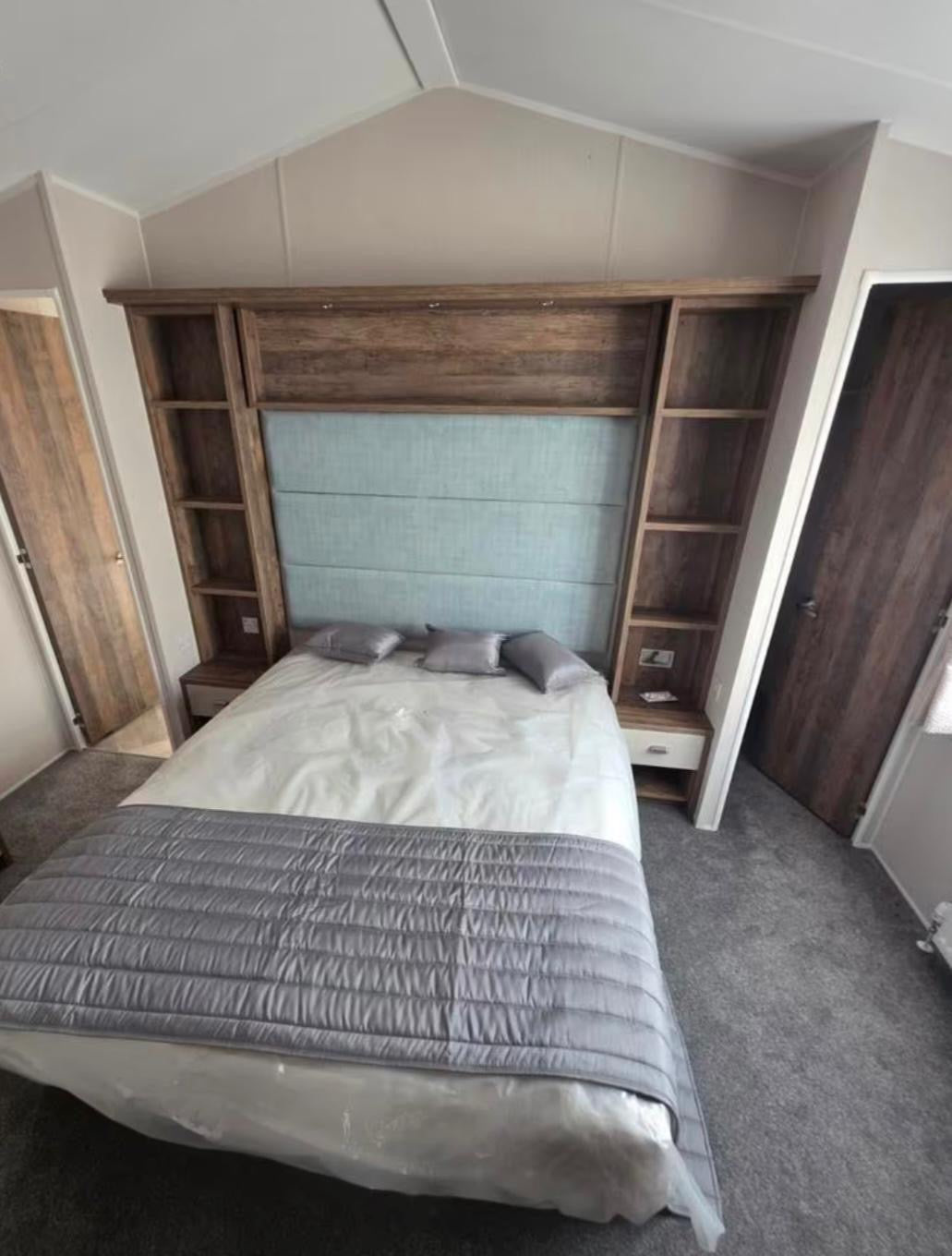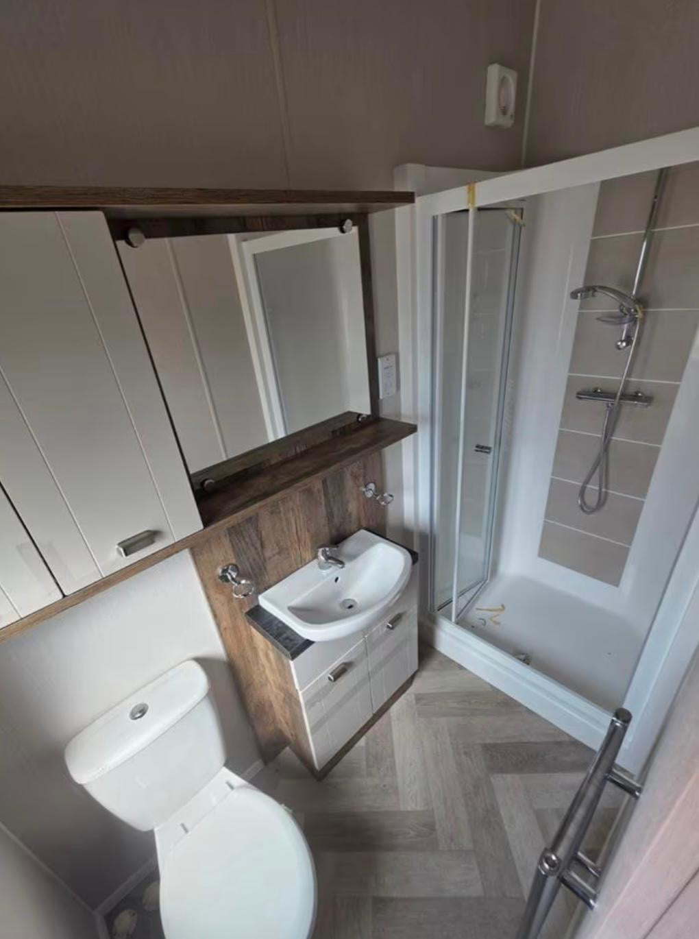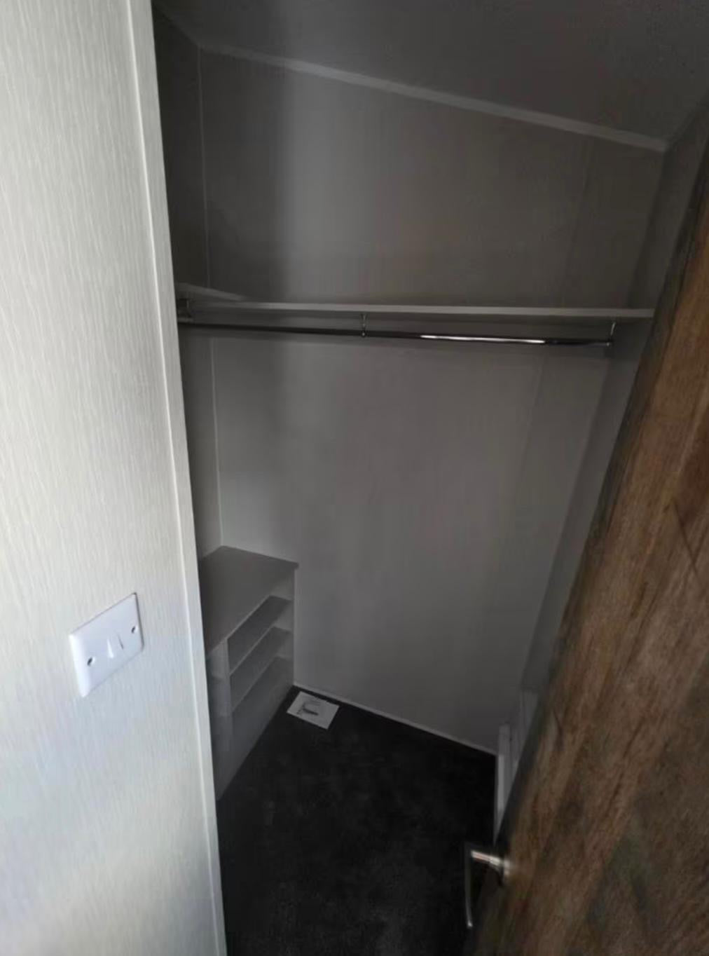 To luksusowy domek mobilny o powierzchni 12,5 × 4 m (ok. 50 m²), zaprojektowany zgodnie ze specyfikacją mieszkaniową BS3632, co gwarantuje całoroczne użytkowanie. Wyposażony w dwie przestronne sypialnie, dwie łazienki, nowoczesny salon i w pełni wyposażoną kuchnię, stanowi komfortowe i funkcjonalne rozwiązanie zarówno jako domek wakacyjny, jak i całoroczny dom mieszkalny