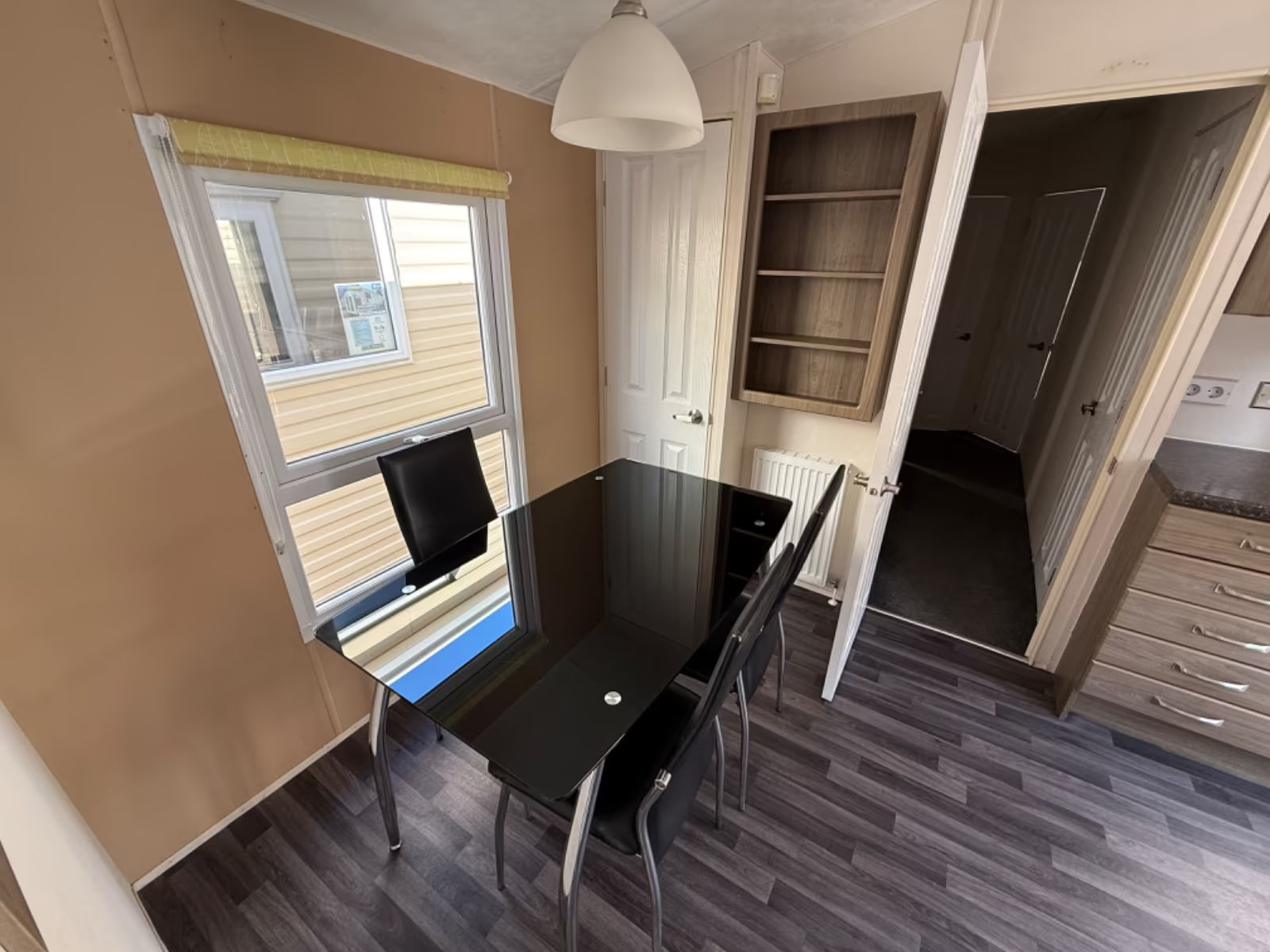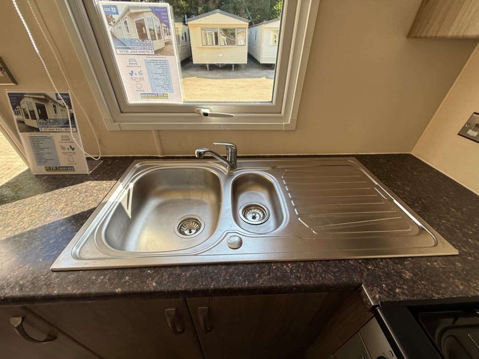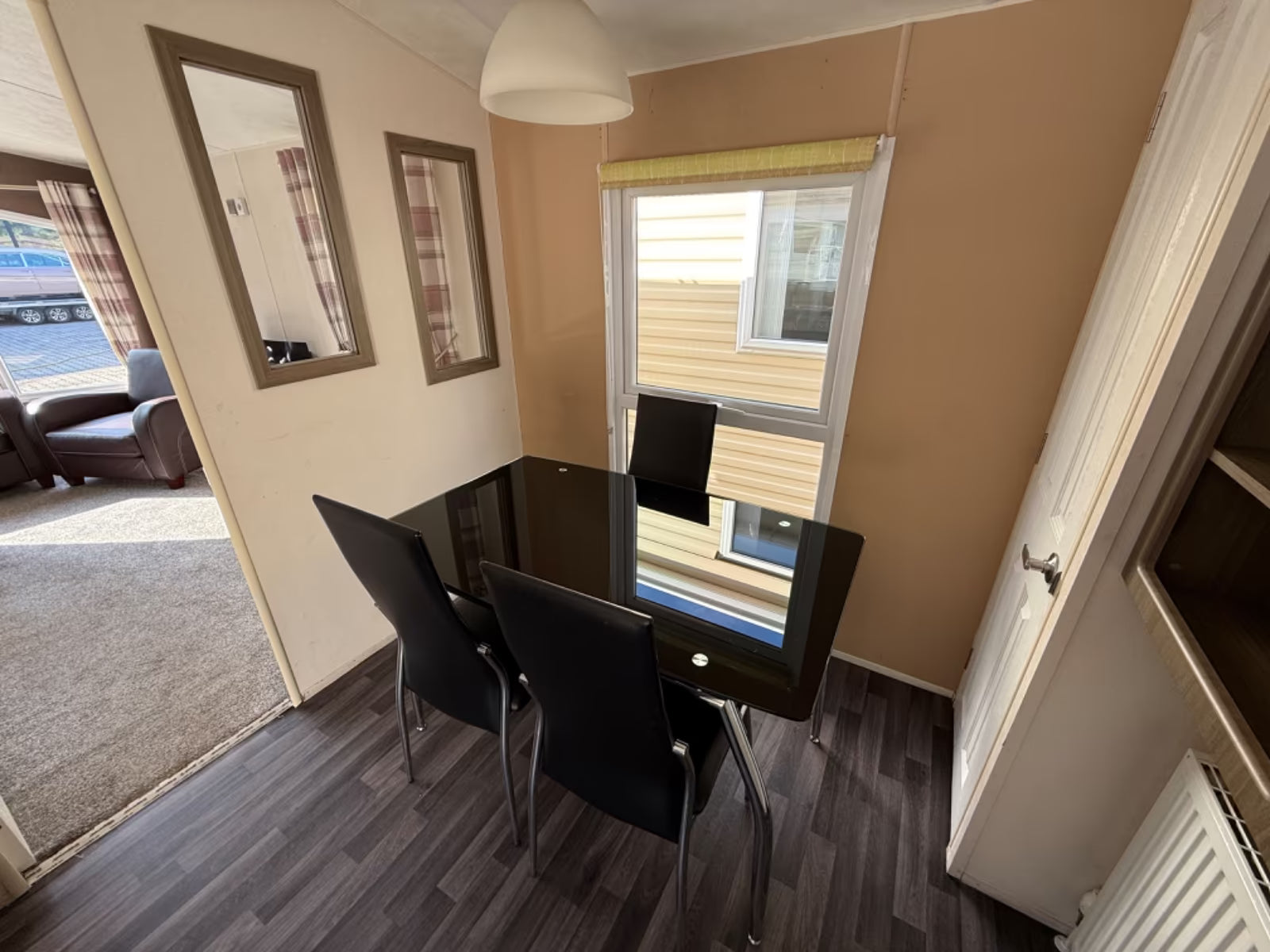 Kuchnia wyposażona jest w czteropalnikową kuchenkę gazową z okapem, piekarnikiem i grillem, a także lodówkę i zamrażarkę. Oferuje również dużo miejsca do przechowywania i blat roboczy.
