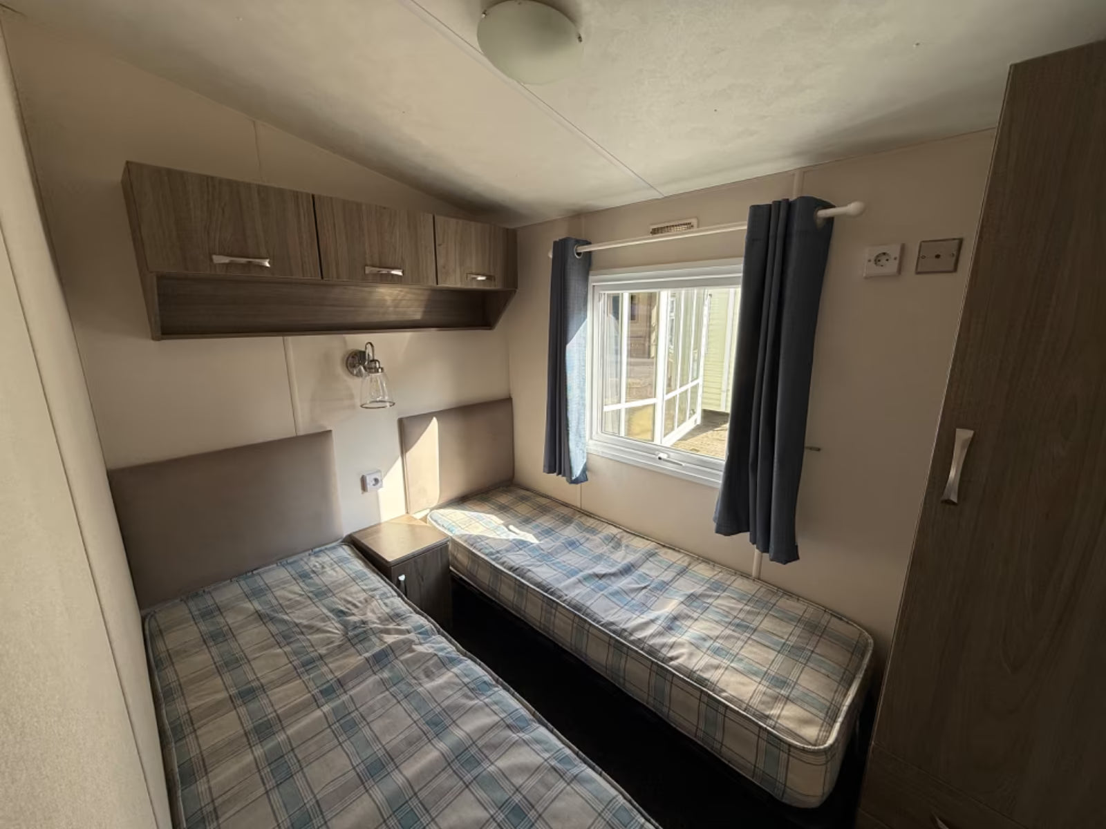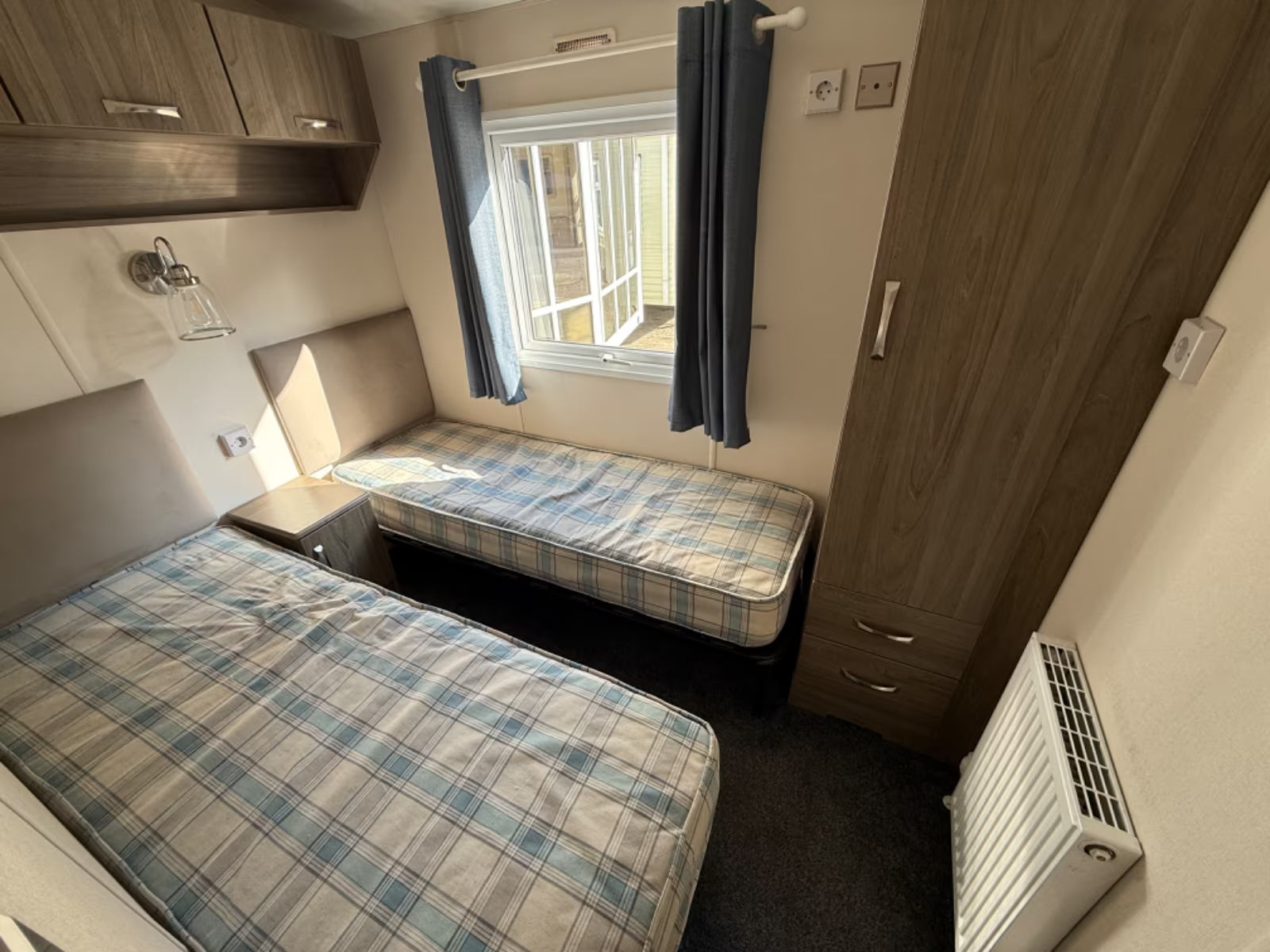 Druga i trzecia sypialnia wyposażone są w dwa pojedyncze łóżka, szafki nocne, miejsce do przechowywania rzeczy nad głową i szafę.