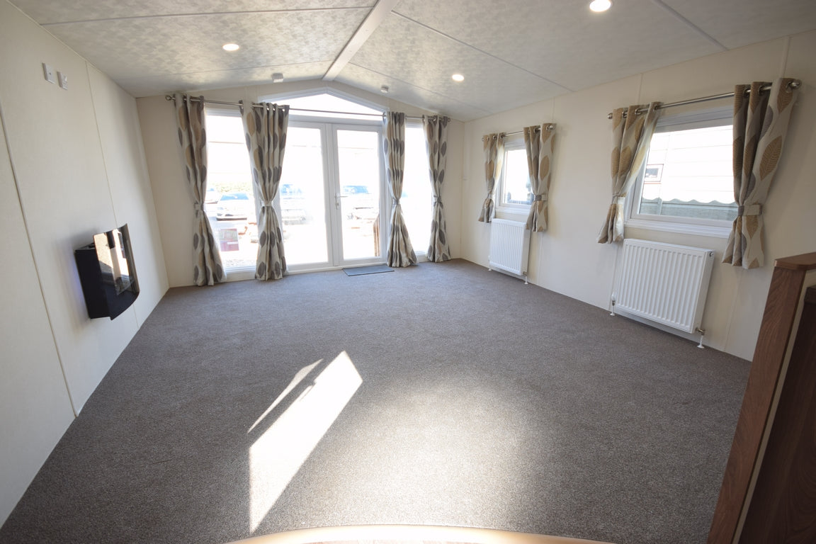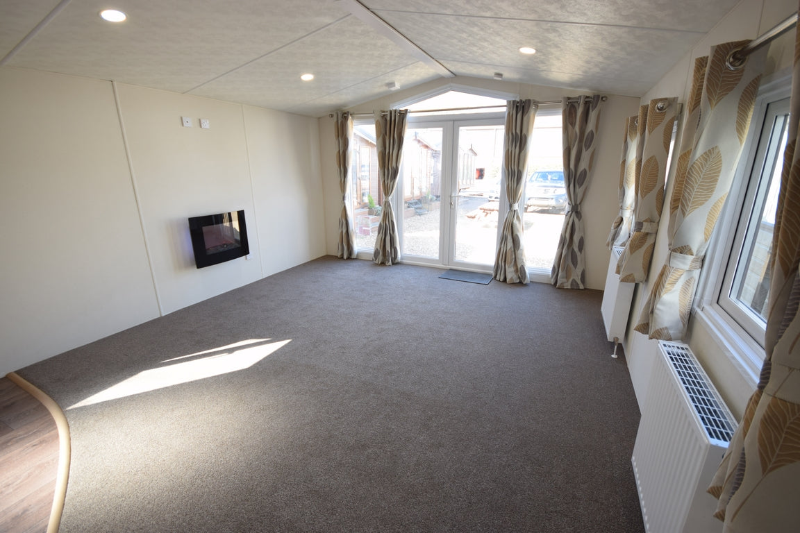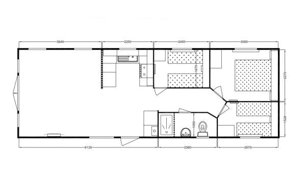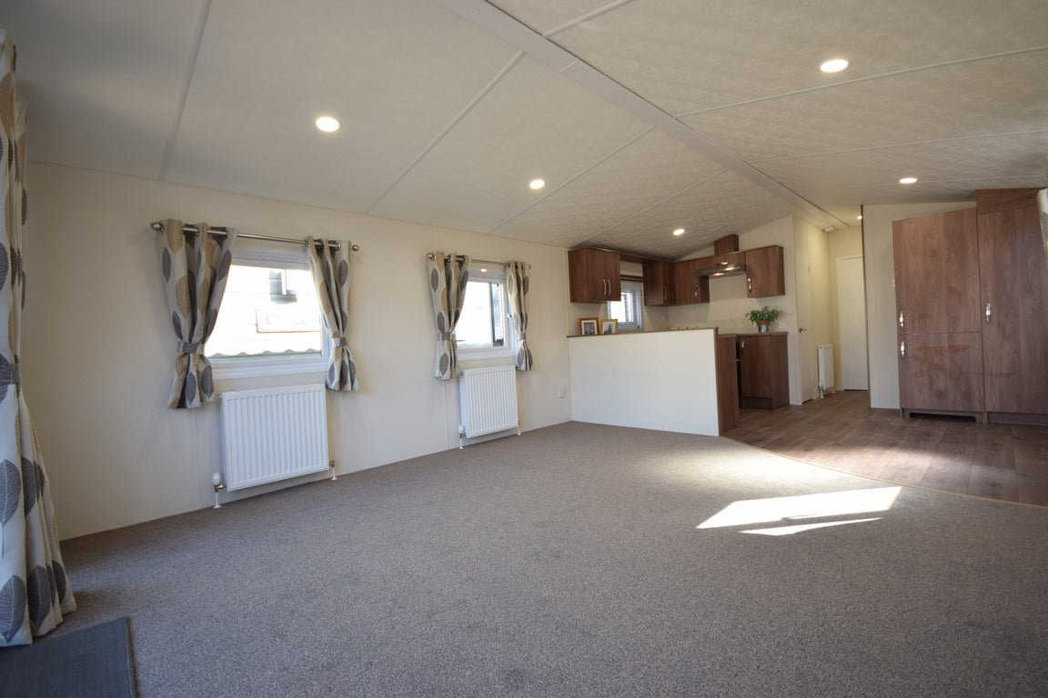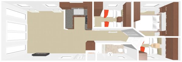 Stylowy, przestronny domek mobilny o długości ok. 11,6 m i szerokości ok. 4 m (dostępne są również inne wymiary na zamówienie).