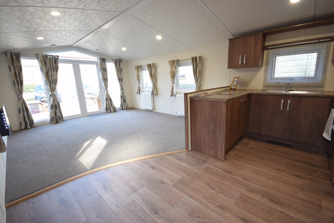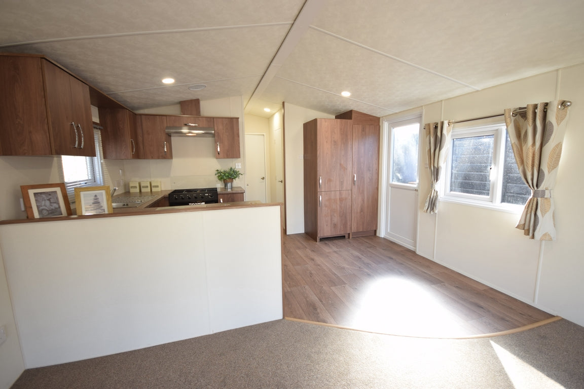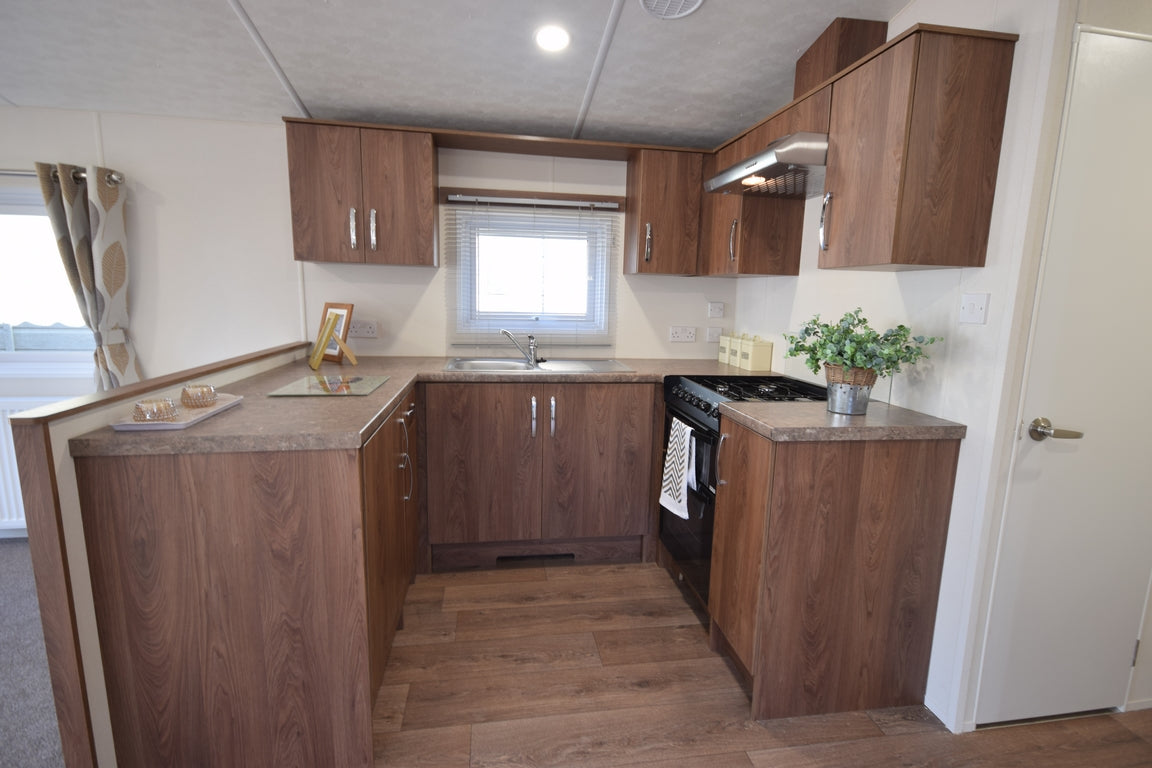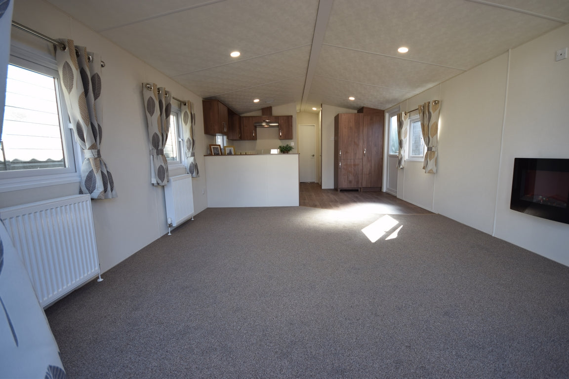 Stylowy, przestronny domek mobilny o długości ok. 11,6 m i szerokości ok. 4 m (dostępne są również inne wymiary na zamówienie).